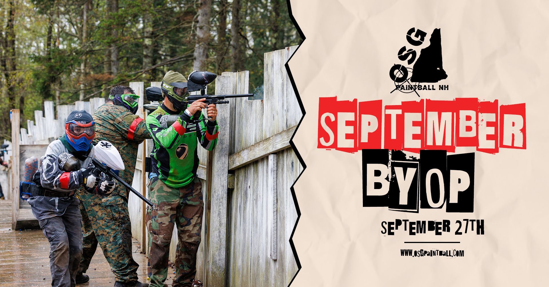 September 27th - Join us on the last Sunday of every month for our(B)ring (Y)our(O)wn (P)aint days. Larger, longer, objective based games. Expect limited wait times between games and all the paintball you can handle.