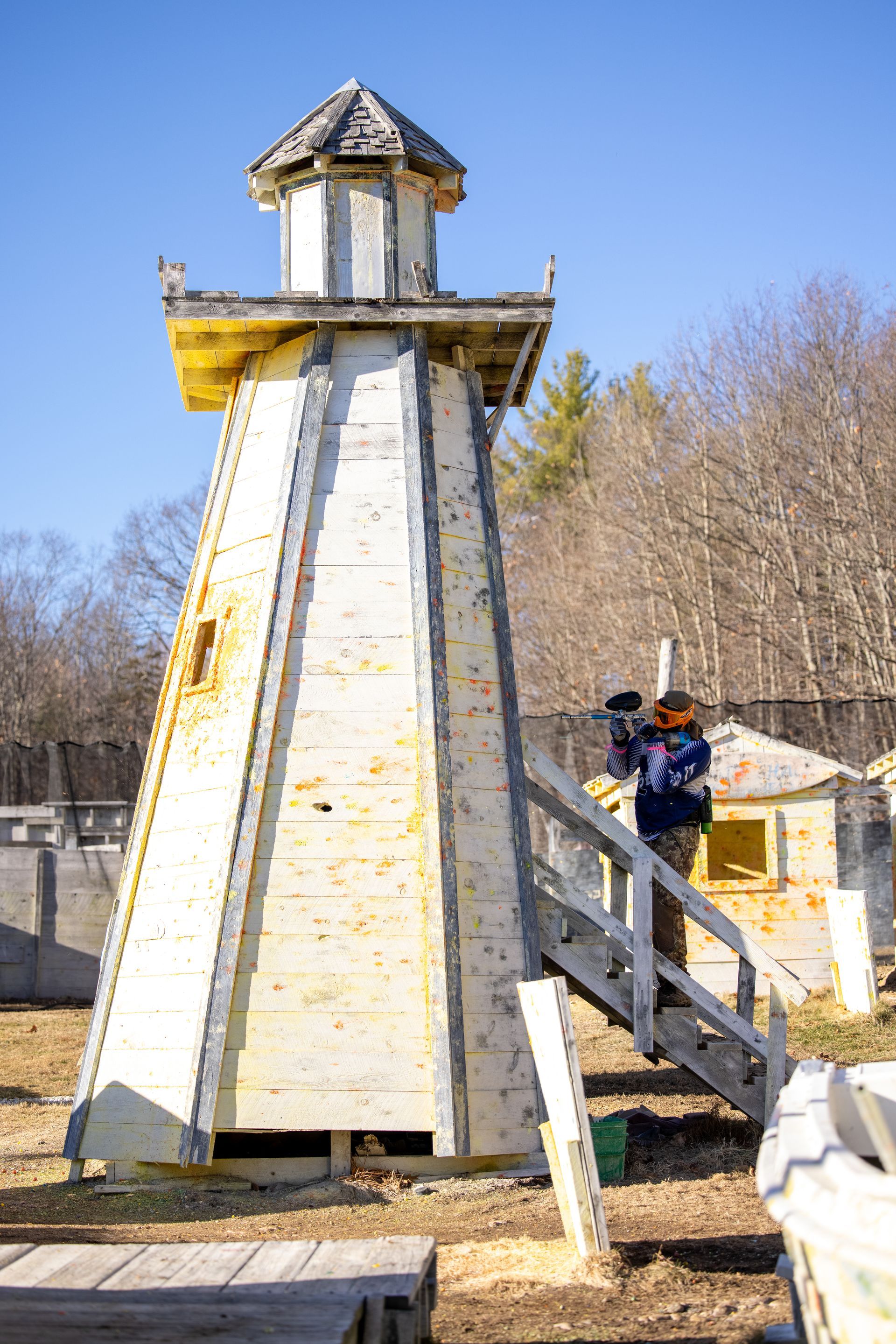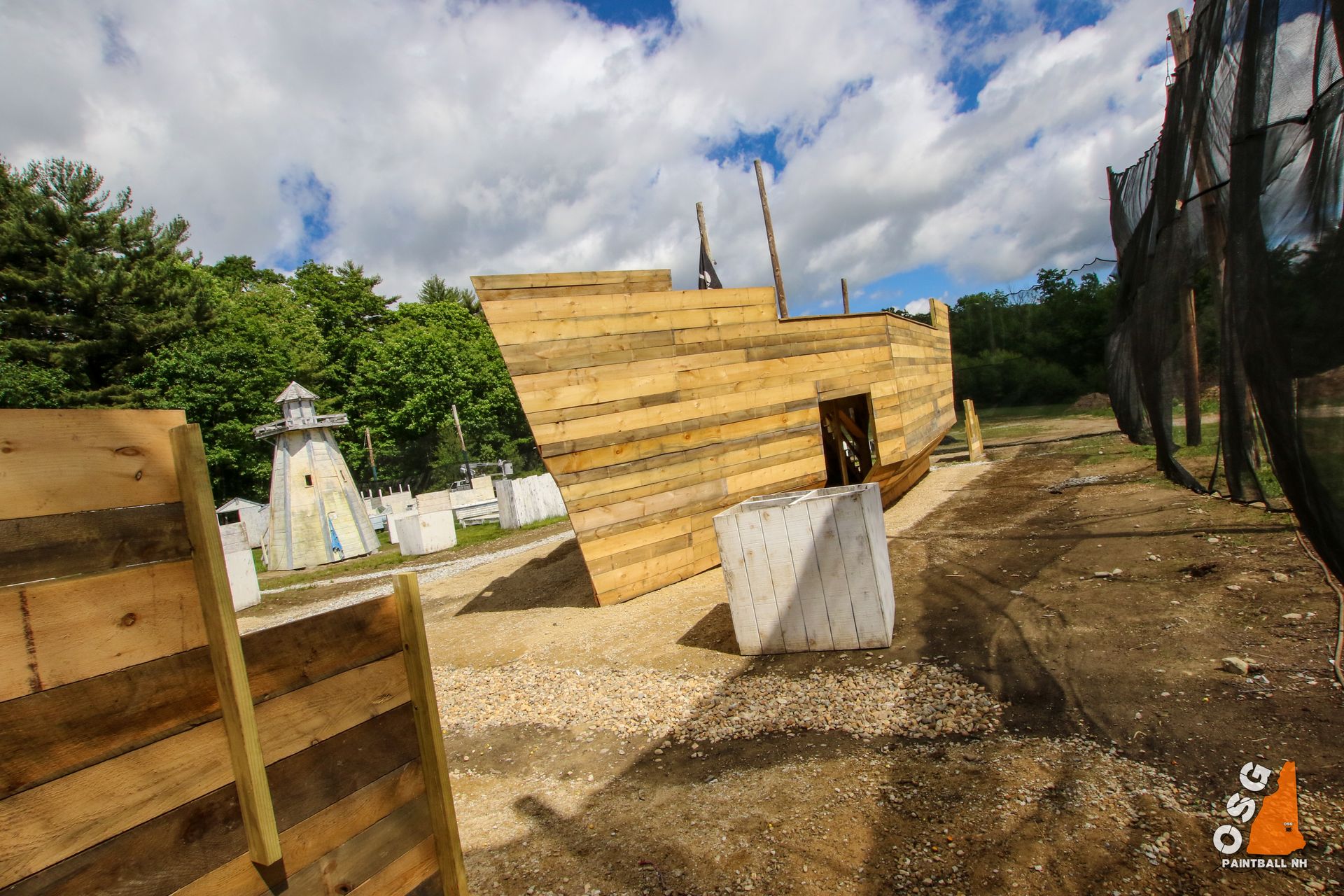 Arrgg! Start on the docks and test your skills by attacking the only full sized tri-mast pirate ship in New England. Boats, crates, a lighthouse, buildings, and paintball pirates stand in your way of victory. Grab the buoy and run it home to secure the win.
