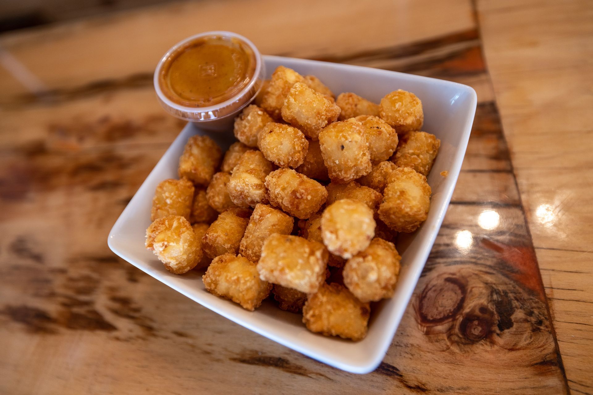 Tater tots topped with smoked pulled pork, pickled onion, pickled jalapenos, BBQ sauce, and house made ranch dressing