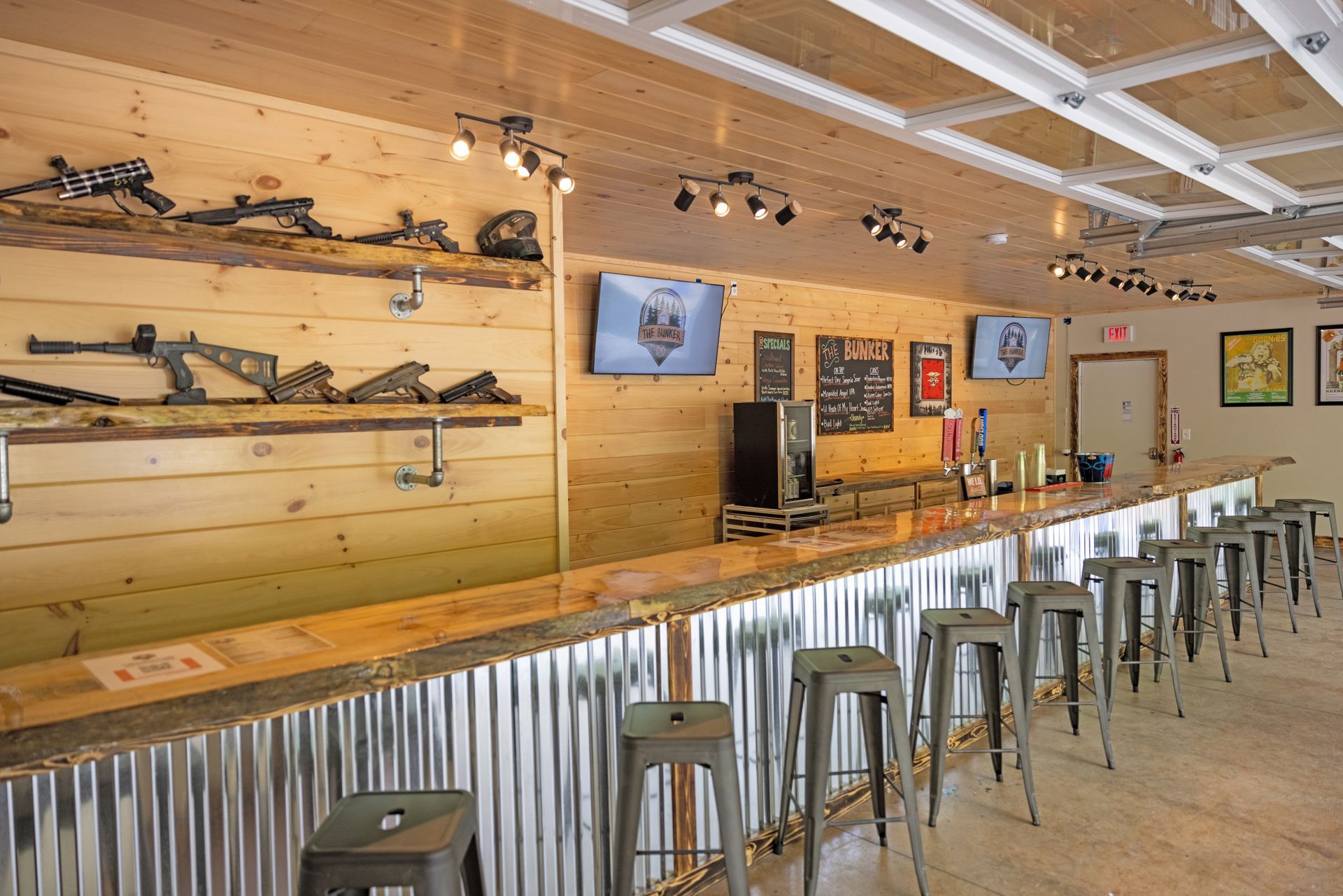 The only bar at a paintball field on the East Coast! Featuring six rotating draft lines, 55 inch TVs playing your favorite paintball videos, and a collection of historical paintball gear on display. Take a seat at our 32 foot long live edge bar after your paintball session, enjoy some delicious food from our food truck, and chase it with an ice cold adult beverage.